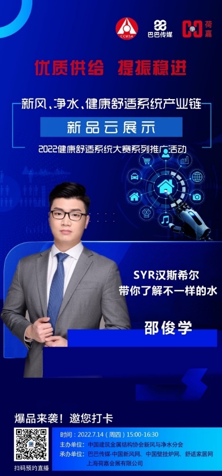 7月14日下午,由中國建筑金屬結(jié)構(gòu)協(xié)會(huì)新風(fēng)與凈水分會(huì)主辦的凈水、新風(fēng)、健康舒適系統(tǒng)產(chǎn)業(yè)鏈新品云展示活動(dòng)在線以直播的形式舉行。SYR漢斯希爾作為凈水行業(yè)德系高端品牌參加了這場別開生面的線上展示會(huì)。